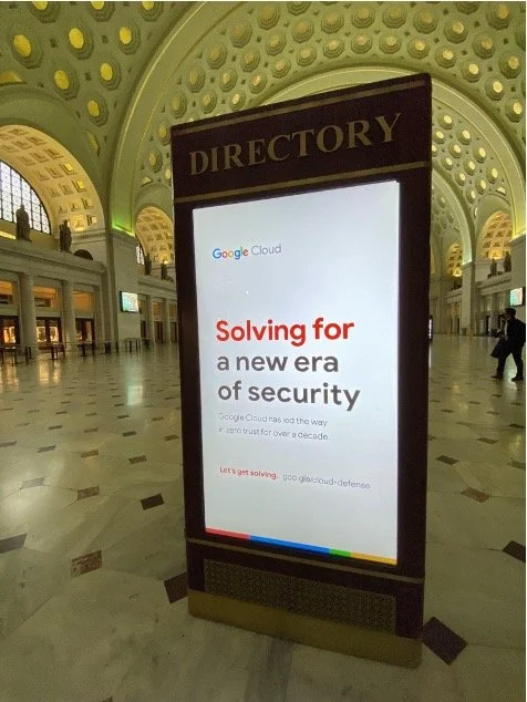 We broadened reach through print, digital out-of-home (DOOH), banners, newsletters, and homepage takeovers — securing presence in high-visibility, policymaker-heavy environments including DCA, Dulles Airport (IAD), and Union Station during a cybersecurity-focused burst.